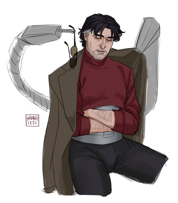 ✨Timeskip!Otto getting to relax in the morning✨ #ottooctavius #doctoroctopus #spiderman #ArtistOnTwitter #spidermanfanart