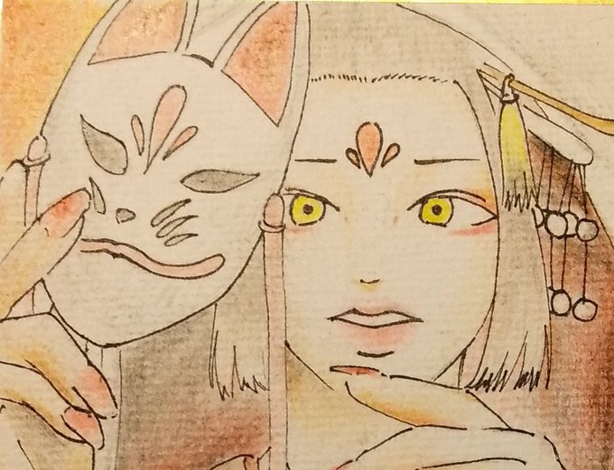 0 5 #狐の嫁入り #イラスト #色鉛筆画 #お面 22/02/23 18:51