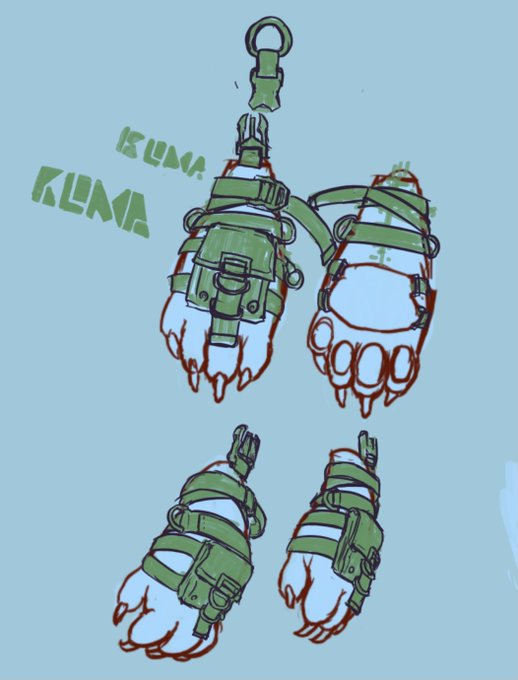 #絵描きさんと繋がりたい #ファッションイラスト 情報量高めの熊の手ラフ 無駄に意味のないベルトとか巻くの好き