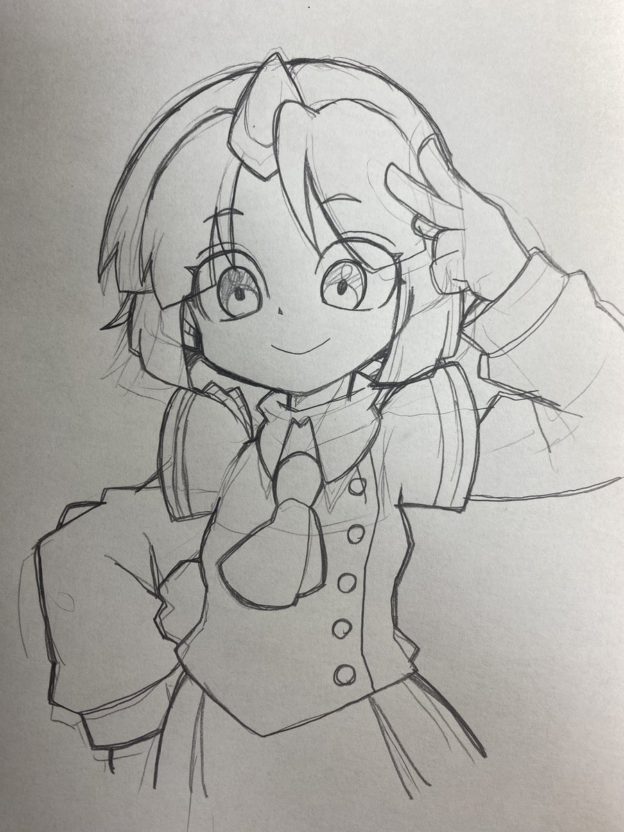 9 19 #7Dエアオンリー2_エアスケブポスト 鉛筆画で失礼! 3のスチューデントスタイル女子という事でヤイバちゃんです! 22/10/10 20:23