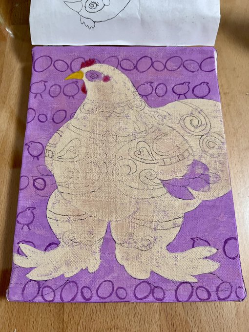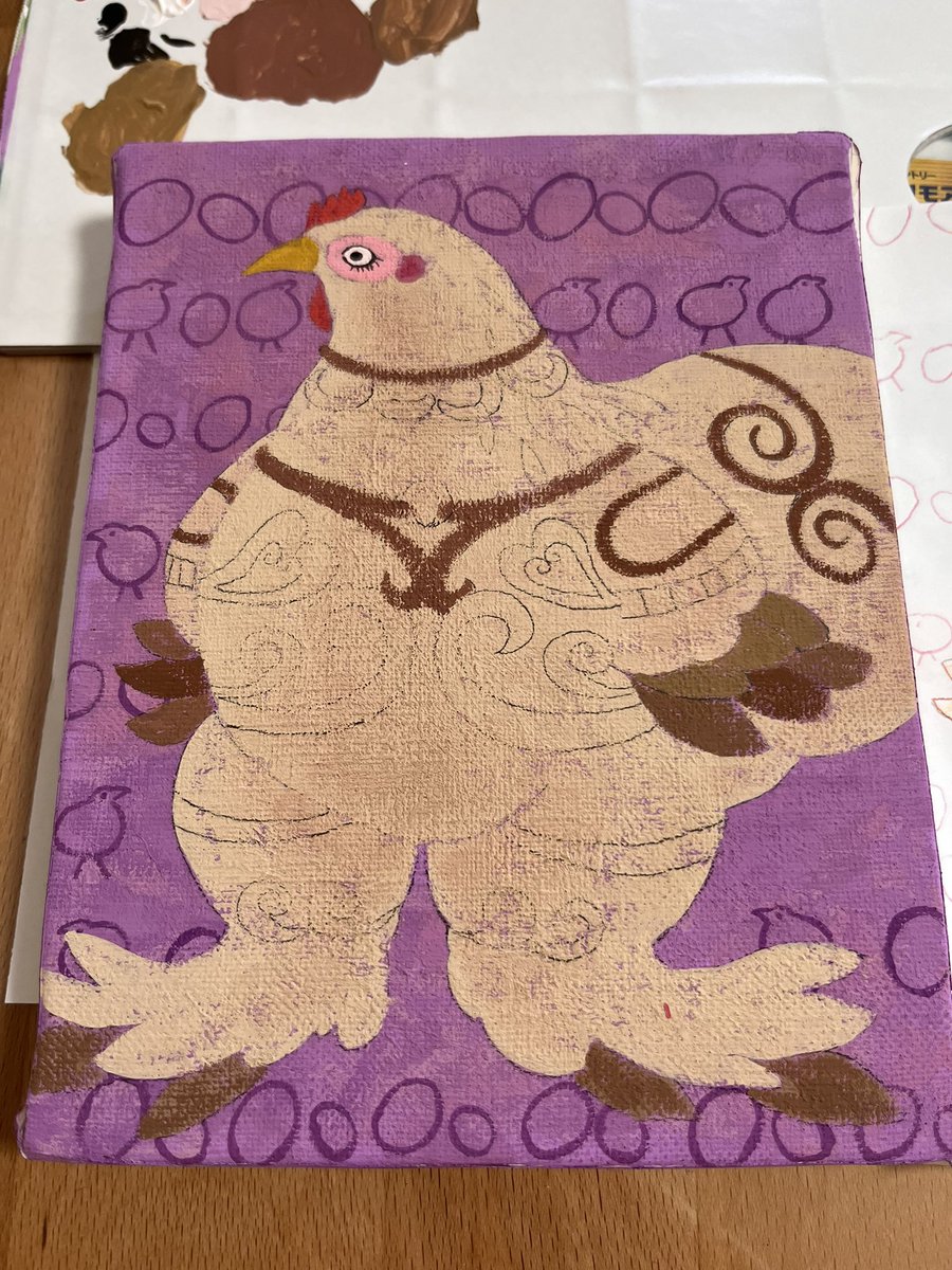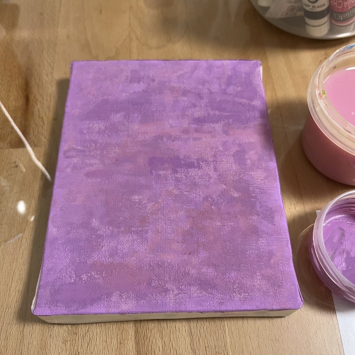 背景色、いい感じに仕上がりました♪ パープルとピンクを重ねて、縄文のヴィーナスにふさわしい色になりました。 #絵描きさんと繋がりたい #アナログ絵 #イラスト #illustration #art #絵画