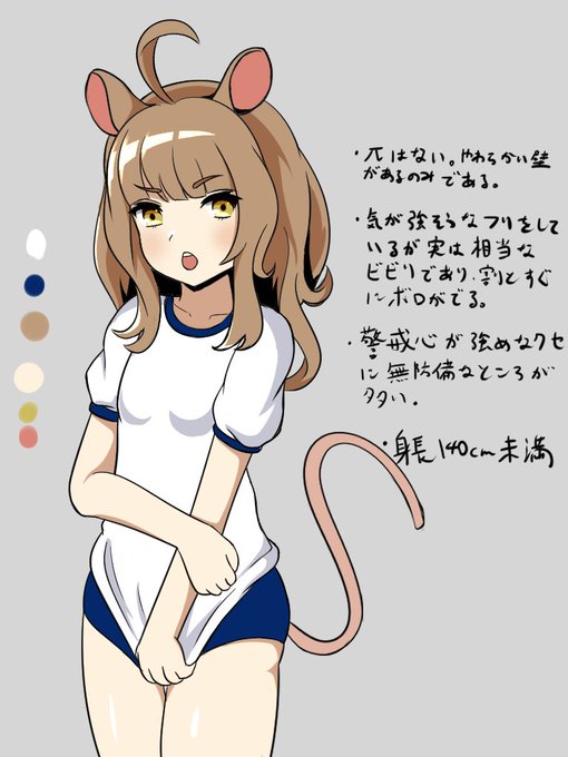 息抜きに昔描いたうちの子のリメイク ねず耳っ子はもっと流行っていいと思う