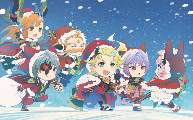 #グラブル 🎄クリスマスの絵を描きたかったので、十天衆のシエテ、ウーノ、エッセル、カトル、シス、ソーン…って結構な人数描いたな自分よ…