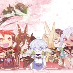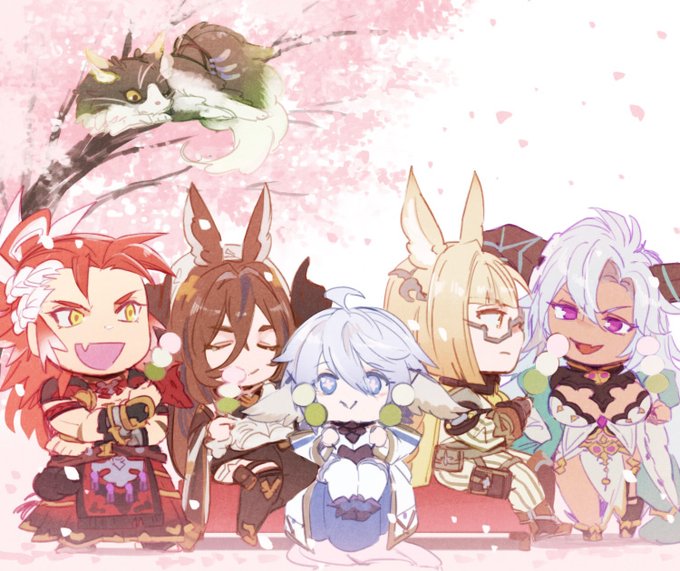 #グラブル 近くの桜並木が、ちらほら咲いてきました🌸 六竜でお花見です🌸