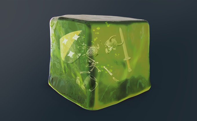 There's always room for Jell-O. Got a passable shader working for the Gelatinous Cube, so he joined the crew. #dndart #TTRPGs #dungeonsanddragons #3dcoat #conceptart