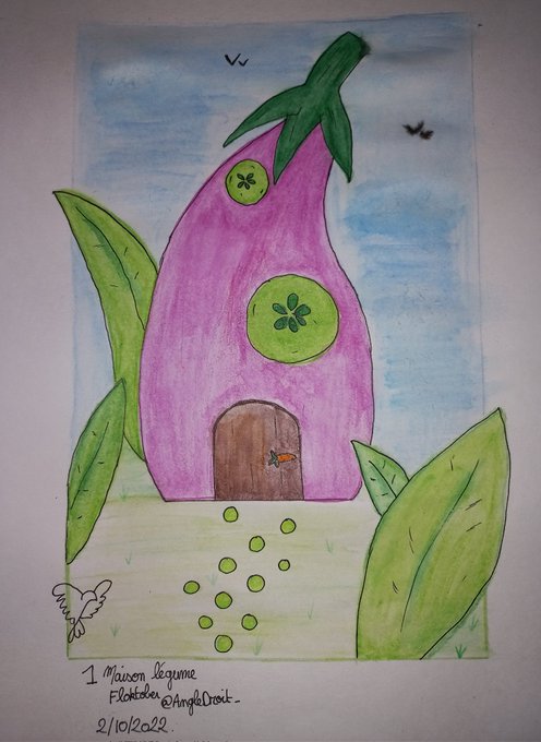 #Floktober Maison légumes ! Crayon aquarelle (J'ai un peu de mal à les utiliser) #inktober2022 #inktober #aquarelle