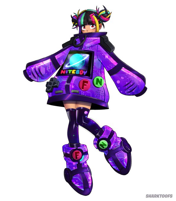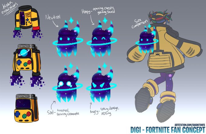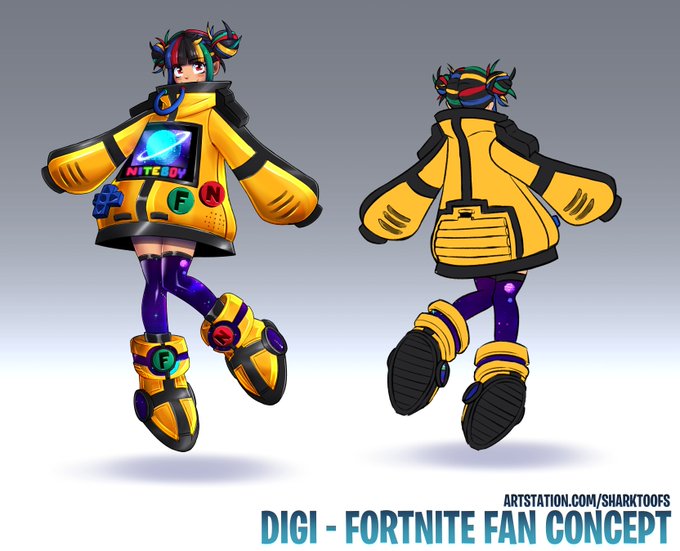 Digi - Both portable and fashionable. Digi has been in the works for over a year at this point and I'm so happy to have landed on a design I'm happy with! It was a ton of fun designing her set and I hope you guys love it, please let me know what you think! 👾 #FortniteArt