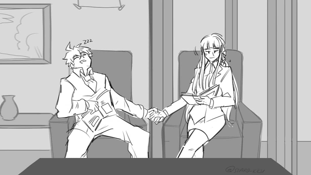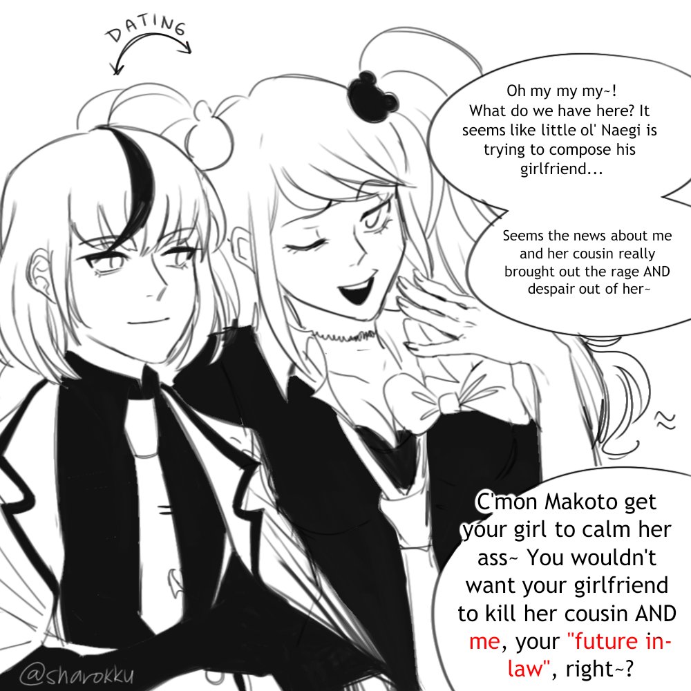 This is based off on @M4R1OTENNISPRO and @Janel_ArtStuff 's tweets about the Hope's Peak gijinka and Kyoko as cousins...they aren't taking it very well. #danganronpa