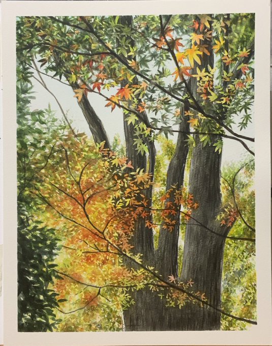 昨年の秋に近所の日本庭園で撮った写真を気に入っていて、今ごろ描いたので季節外れな絵ですが、とりあえず完成です。 やっぱり自力は難しいな。もっとこうしたい、というのを抱えつつ次回も頑張ります。F6サイズ。 #水彩画 #透明水彩 #Watercolor