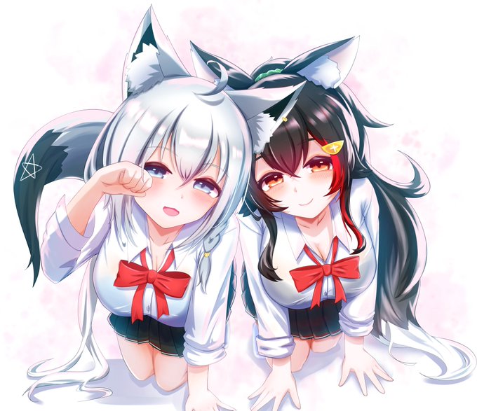 #絵フブキ #みおーん絵 春っぽいJKフブミオ🦊🐺 リプに個別あり
