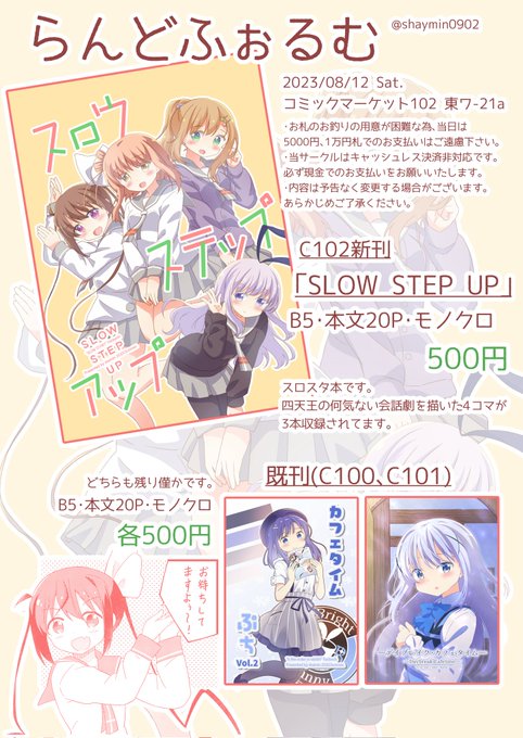 あなたのサークル「らんどふぉるむ」は、コミックマーケット102で「土曜日 東地区 “ワ” ブロック 21a」に配置されました! 遅ればせながら、夏コミ当選しました。 まさかまさかのお誕生日席です。 よろしくお願いいたします。 webcatalog.circle.ms/Circle/Map/173… #C102WebCatalog