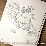 #Inktober day 2 - Tranquil! I didn’t have time to post for the last couple of days, so I’m getting caught up now! This will be a coloring page for my Patreons this month. #inktober2018 #ink #elk #rabbit #birds #nature #coloringpage #forest #tranquil #animalart #micronpen #hunt