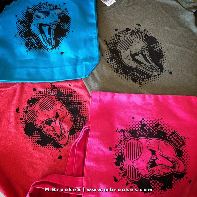 Shirts $15 & totes $10 at @mesacountylib Comic Con! We will have limited stock available, so be sure to snag one! #trex #velociraptor #raptor #tyrannosaurusrex #jurassicpark #jurassicworld #dinosaurs #dinosaur #paleoart #paleoillustration #sciart #inktober #inktober2019