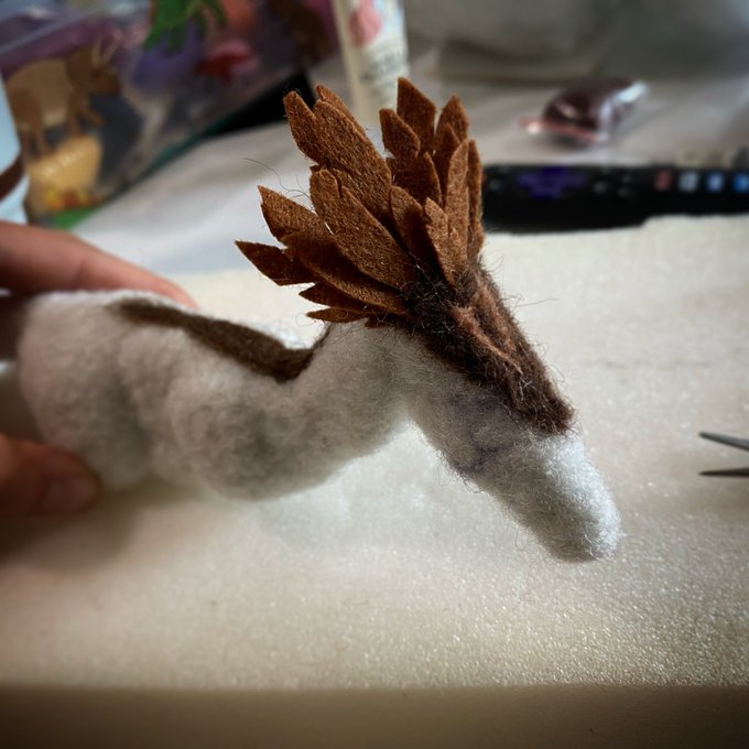 I’ve been learning how to felt! This is my third and most complicated one yet - a Velociraptor!! I just started laying in feathers and some coloration! #felting #dinosaur #dinosaurs #paleoart #paleontology #paleoartist #paleontology #craftober #feltedanimals #sciart #feltingart