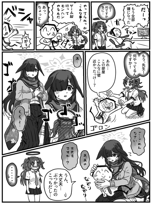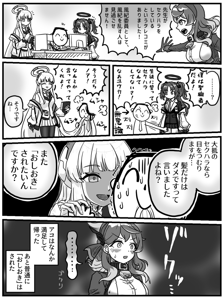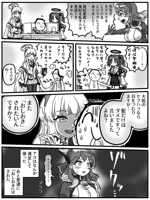 早瀬ユウカさんと生塩ノアさんと天雨アコさんが出る漫画を二次創作の情報だけで描きました。 #ブルアカ
