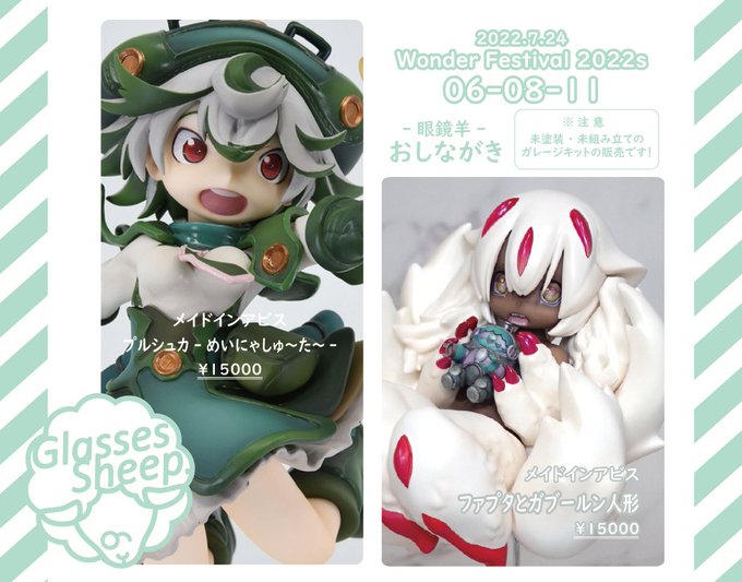 2022年7月24日に幕張メッセで開催のワンダーフェスティバル夏に参加いたします! ブースNo.6-08-11 Glasses Sheep -眼鏡羊-となります! 販売物はメイドインアビスより二点です。 よろしくお願いいたします!#WF2022s #メイドインアビス
