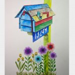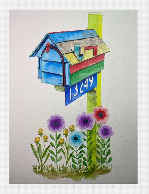 This fun multi-colored mailbox is the latest of my watercolor illustrations of mailboxes found on Bainbridge Island. You can follow the journey of this project at facebook.com/groups/uniquel… #shelleyylstart #watercolor #watercolorart #mailbox #mailboxes #bainbridgeisland
