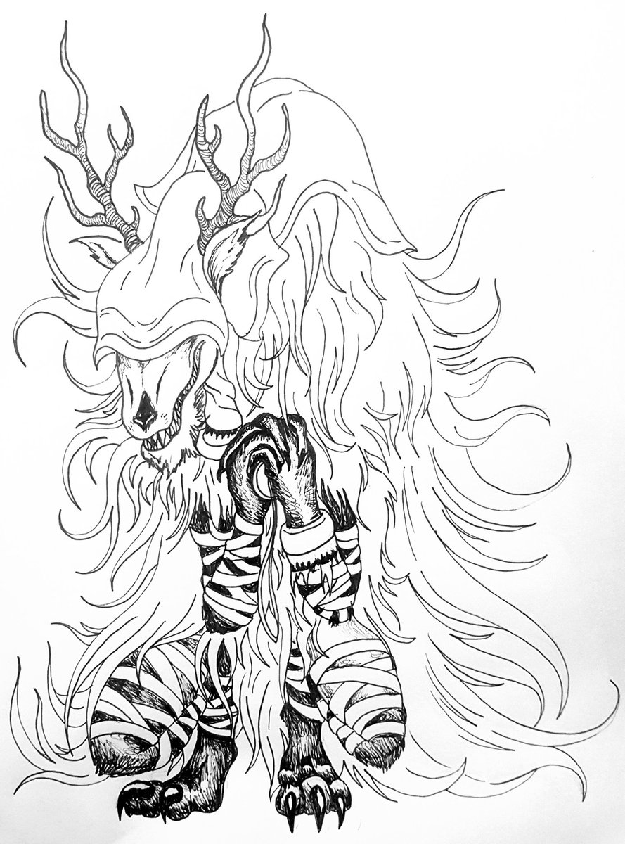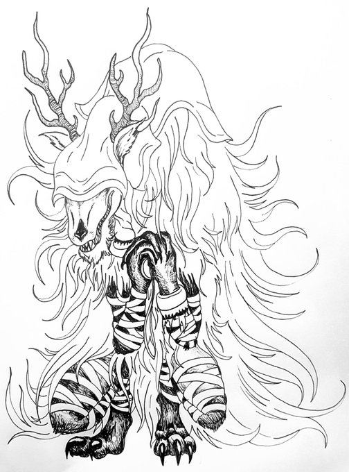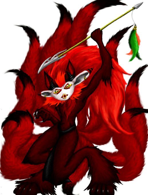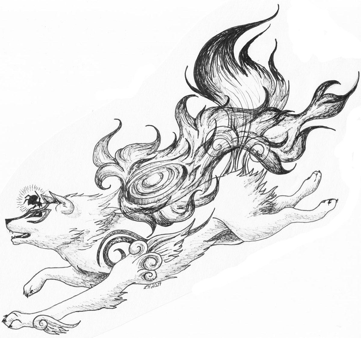 #inktober52 prompt 32 #tail is represented by Koji, a 9 tailed tribal blotfox designed after lots of #Okami gameplay #kitsune #furry #ninetails #artistontwitter #inktober #oc #redraw