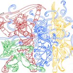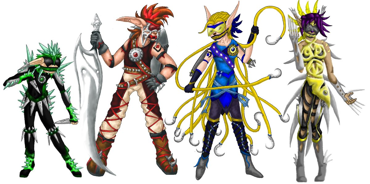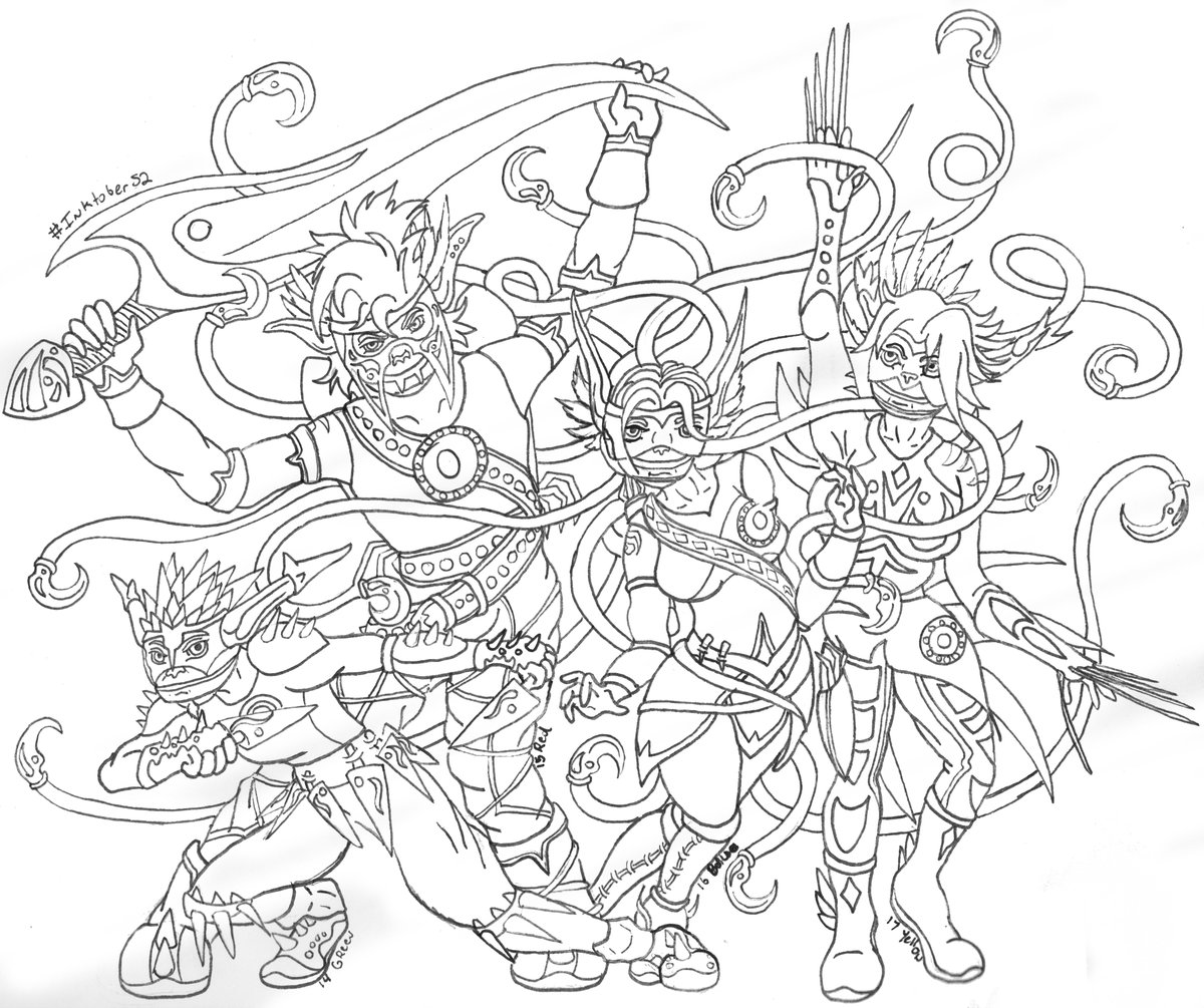 #Inktober52 prompts 14-17 are #Green #Red #Blue and #Yellow which correllated perfectly with my Eco Harvester crew from the #JakandDaxter universe. Spike, Fangz, Tailz, and Clawz, each with their corresponding color of eco. #ArtistOnTwitter #OC #Redraw
