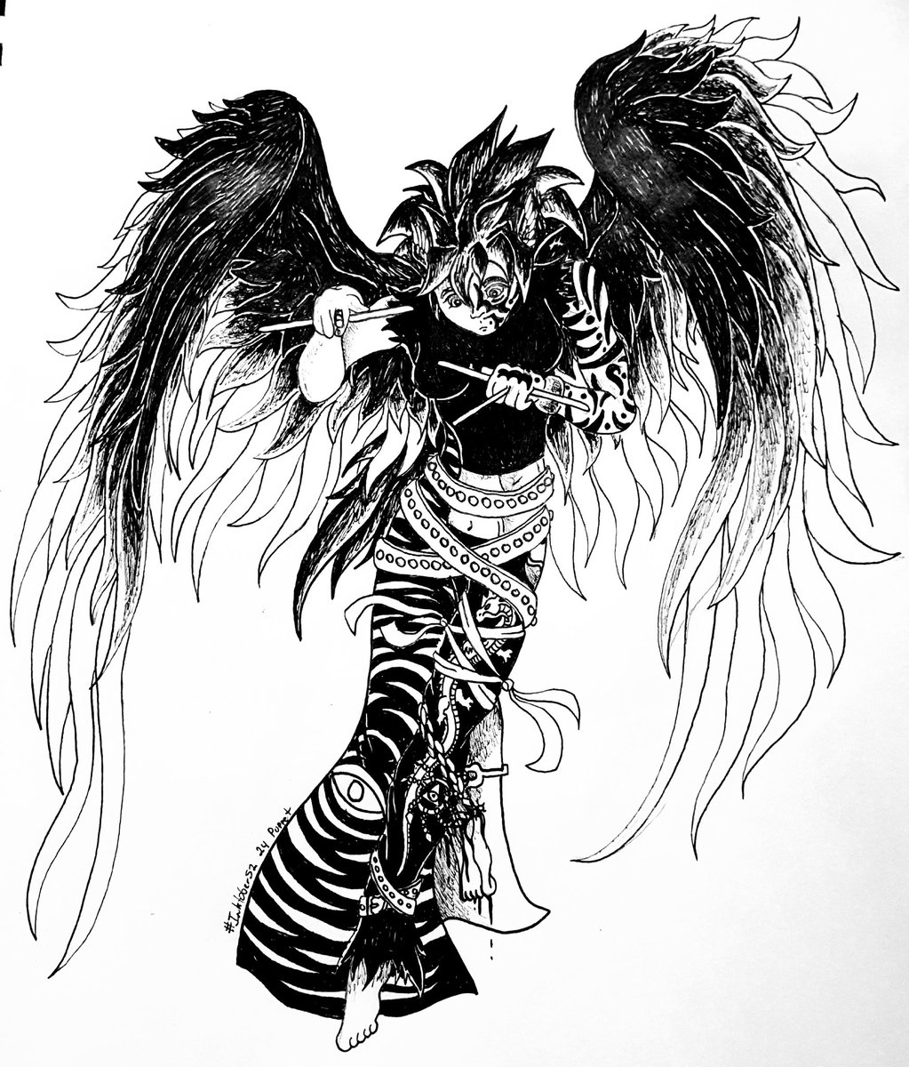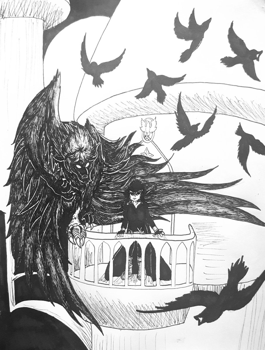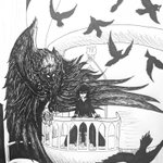 #Inktober52 prompt 11 is #tower featuring a redraw of an old #HarryPotter fancharacter, Safar Tamura. He was a were-raven, inhabiting one of the upper turrets of #ravenclaw tower 😂 he is kind of laughable now, but fun to redraw #oc #redraw #artistontwitter #raven #inktober