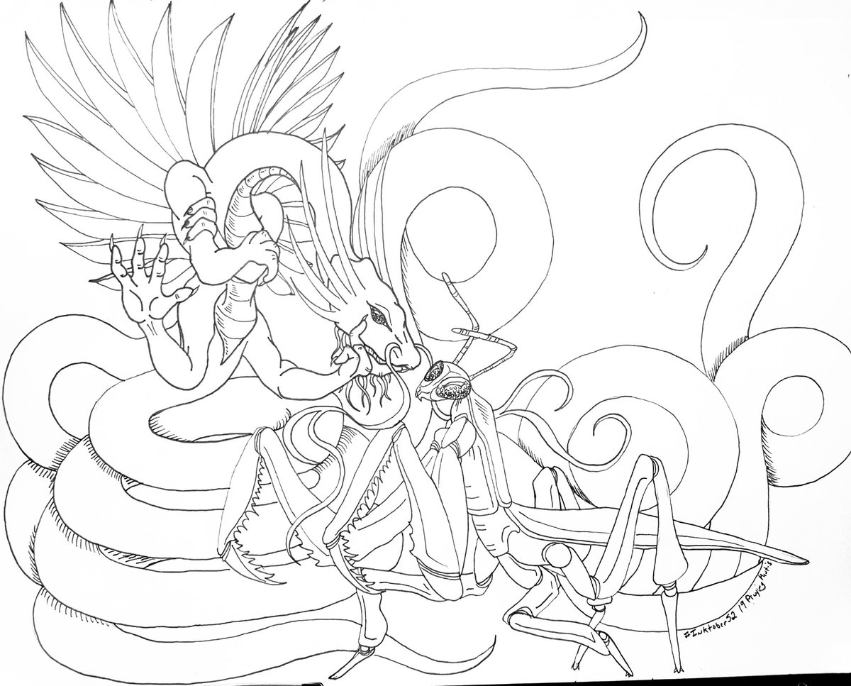 To celebrate making it to the halfway point of #Inktober52, I wanted to feature my four favorite pieces from this quarter- 14/15/16/17 #Green #Red #Blue #Yellow, 19 #PrayingMantis, 23 #Shell, and 24 #Puppet. #OC #Redraw #ArtistOnTwitter #Inktober #GonnaColorSomeoftheseInTheFuture