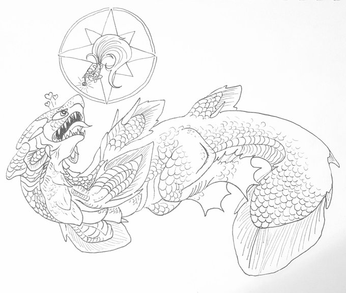 #inktober2020 Day 1 and #inktober52 Week 39 is #Fish featuring my first of the #monsters #Jyuuratodus from #monsterhunterworldiceborne and Sheen, who is my #OCRedraw #SapphireCorps member. #ArtistonTwitter #inktober