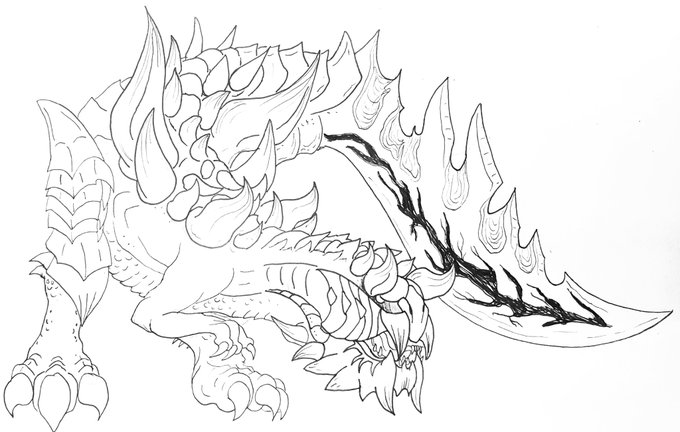 First, there was Mud-rex #barroth, and now, #inktober2020 day 4 is #blade featuring Musashi-rex #Glavenus #monsterhunter #inktober #artistontwitter