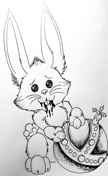 #inktober2020 day 6 is #rodent, so today's #monster is the white #bunny #rabbit from #MontyPython and the #holygrail #artistontwitter #holyhandgrenade #inktober