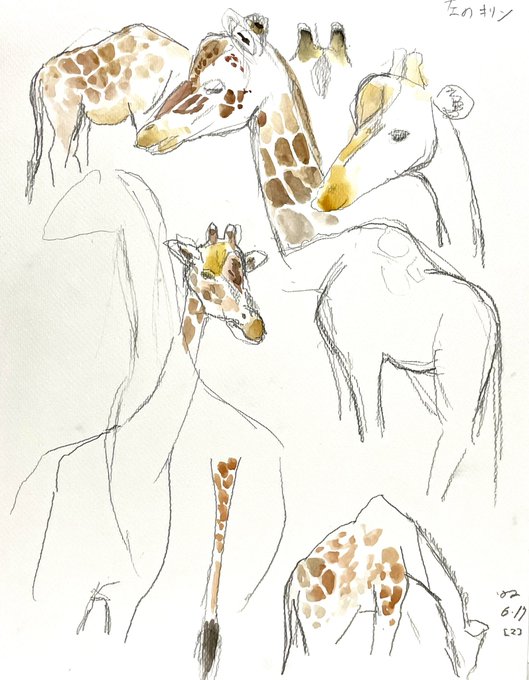 2 35 また動物園に行きました。 今日はキリン。 思ったよりもエラが張っている。 #水彩画 22/06/17 19:03