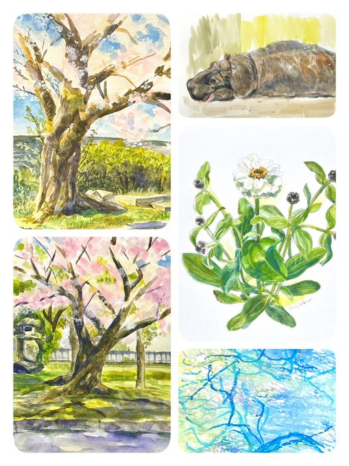 #2022年自分が選ぶ今年上半期の4枚 ちかっぱーとのおかげでたくさん描けた。 動物園スケッチも色々出来たし、良い上半期でした😊