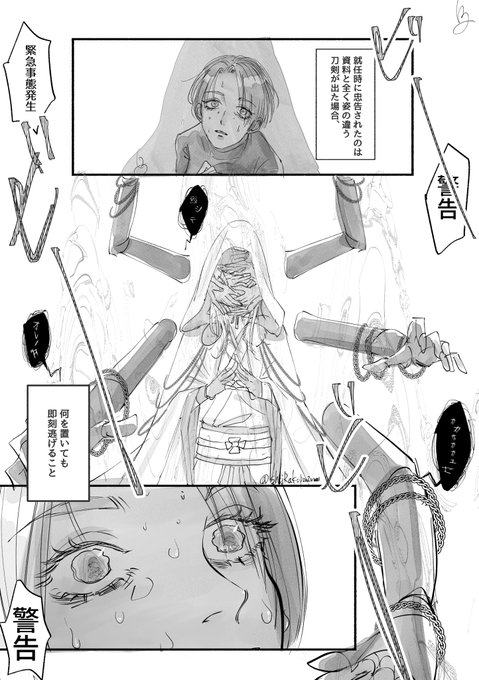 ※ものっすごく捏造刀剣ホラー 【警告】顕現の際、資料と全く違う姿で顕現された場合即刻その場を離れ、本丸を閉鎖し然るべき機関に報告すること。 報告されてる特徴としてはどれも顔が見えず、刀を欲するという。 決して、その顔を覗いてはいけない。