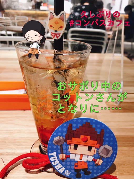 久しぶりにいってきたー! コットン太郎さんがバイトしてるの見てきたよ |д꒪ͧ)… こっそり描きました(家帰って描き直しましたw) またコースター変わったら行きます #コンパスカフェ #コンパスお絵描き #コンパス