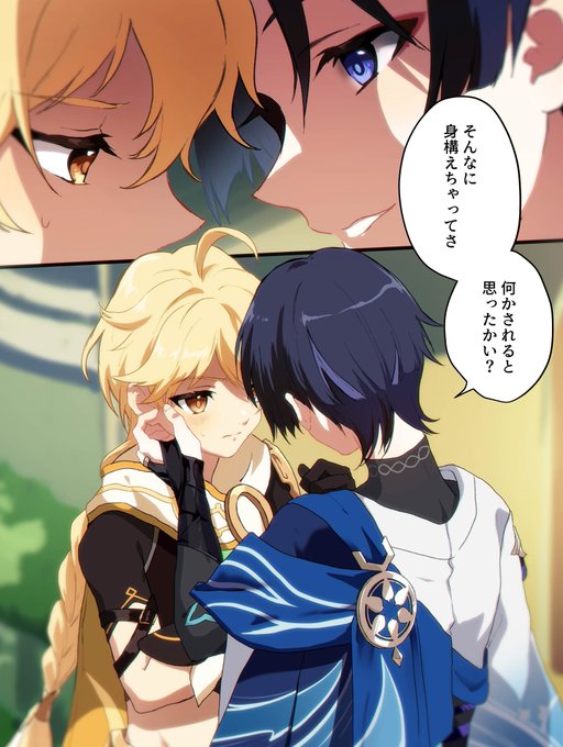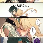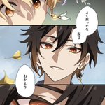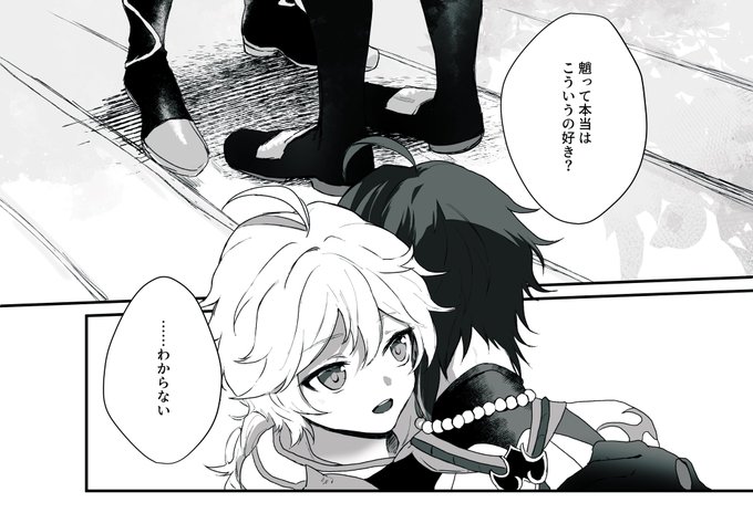 通販予定の魈空本サンプルです。(1/2) B5/52P暫定(描き下ろし+Webオンリー展示漫画) 新規は溺れた空を助ける魈の話。最終的にハッピーですが辛い感じの描写があります。詳細はpixiv→ pixiv.net/artworks/10979…