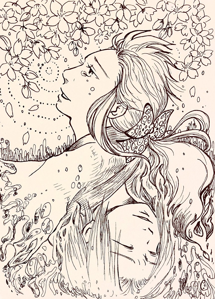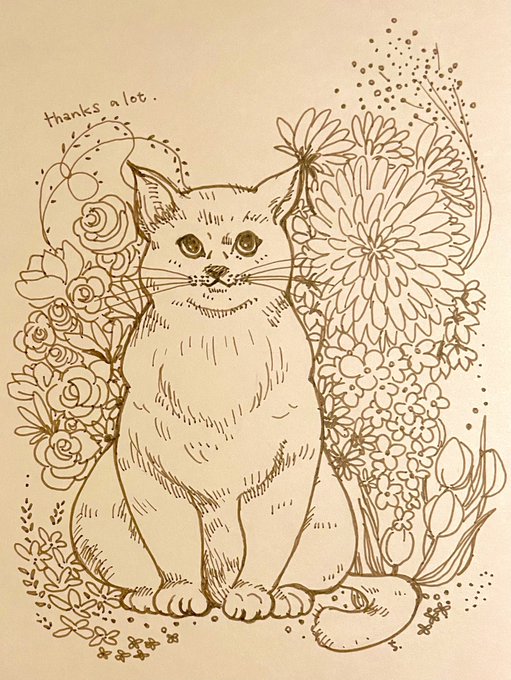 ペン画の時はミリペン(0.3,0.5,0.8あたりを多用)あとは色鉛筆(ファーバーが好き)と水彩絵の具(これは家にあるのテキトーに笑)基本的にせっかちなので雑さ目立つなぁ😓(なのでエフェクト加工しちゃうのです) 印刷物としてどうこうするものは少ないので、良いよね…😌✨← #金カムアナログイラスト部