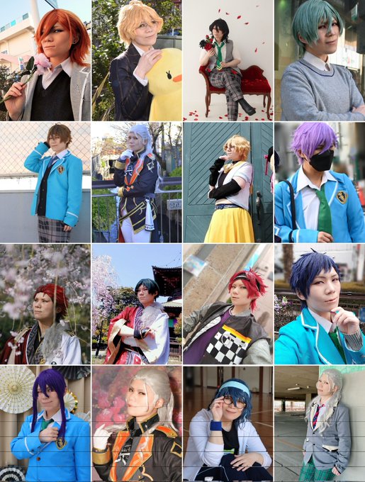 ♢cos♢ ※カラコン加工 #みんなのコスでカラフルな髪色キャラを9人見たい enstとutpr各9人ずつ並べてみました♪ カラフル~🎶