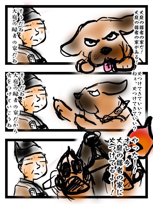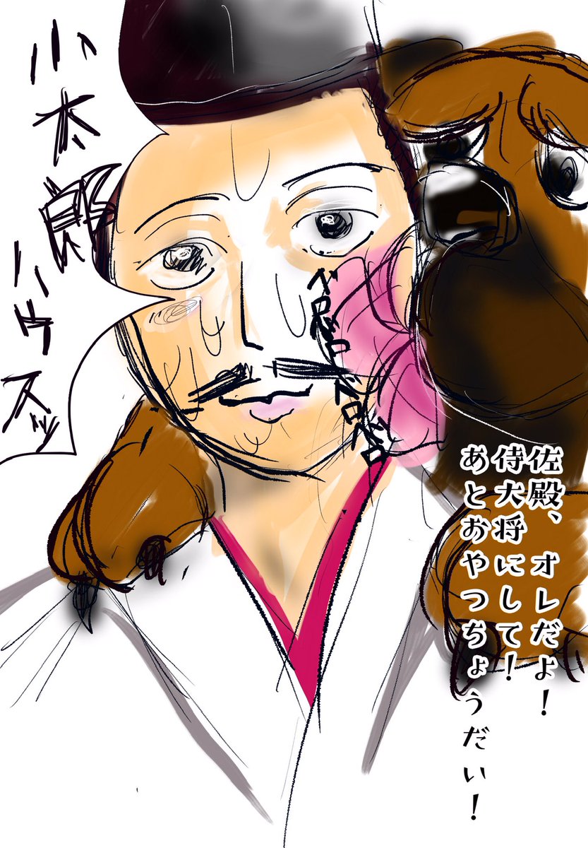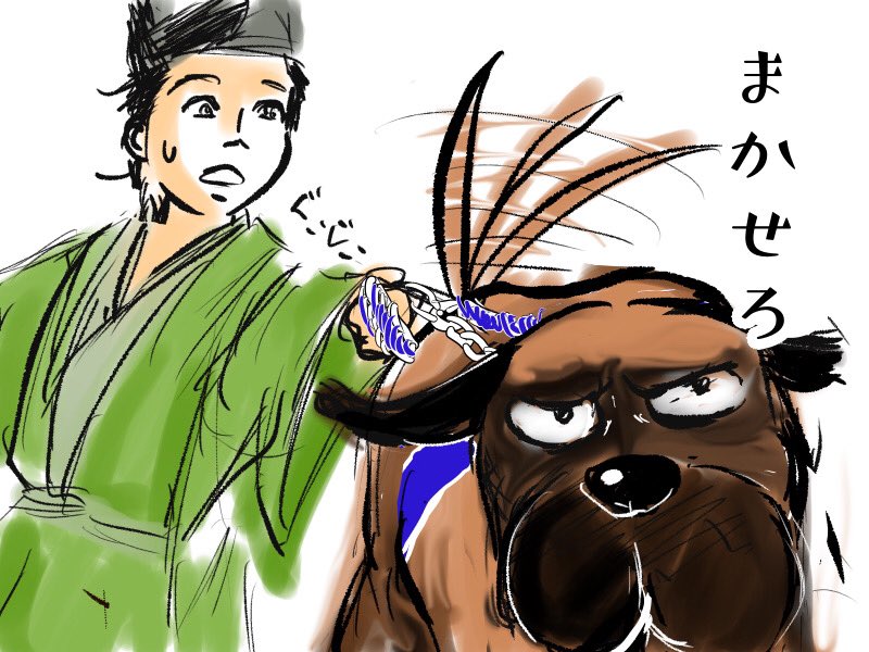#殿絵 ってタグつけて良いのかわからないけど、とにかくわたしには和田義盛が大型犬にしか見えなかった…… #鎌倉殿の13人 マフティフかセントバーナードか迷ってマフティフにした。 twitter.com/shibaigoya/sta…