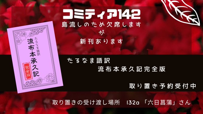 11月27日 #コミティア142 I48a 岬の芝居小屋 院宣を被り隠岐に流される事になったので、欠席します! が、新刊あります! 11月21日までに取り置き予約していただければ、当日 黒嵜さんのスペース(I32a)@geji2_n で受け渡しできるようにします(`・ω・´)ゞ 詳細は mugensekai.myuura.com/?p=128124