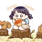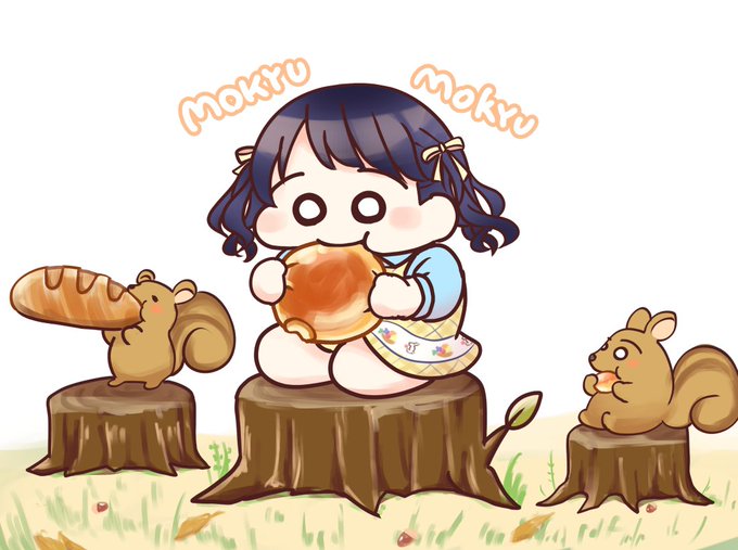 リスとふかふかのパンを食べる小糸ちゃん。