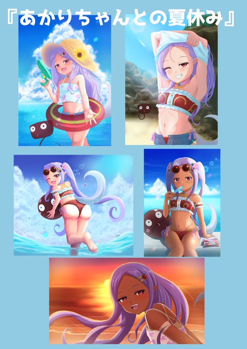 6 18 #夏休みはフォロワーさんが増える #絵柄が好みって人にフォローされたい この夏は『#あかりちゃんとの夏休み』といううちの子蛇園あかりちゃんと海で遊ぶシリーズを描いております🌻 22/08/17 20:02