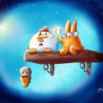 『雲の上のピクニック』 紫外線が気になるリップバニー🐰、雲の上でも花粉が怖いニワセン🐔、太陽光で焼肉をするはっしー🐦 #イラスト好きな人と繋がりたい #みんなで楽しむTwitter展覧会 #リップバニー