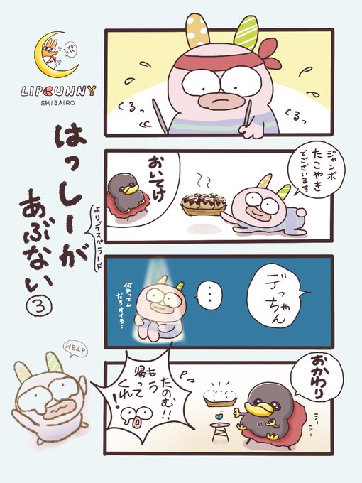 『はっしーが危ない①』 大変!怪人デスペラードに、はっしーが連れ去られた! だけどリップバニーが心配するのは…? #4コマ #4コマ漫画 #漫画が読めるハッシュタグ #みんなで楽しむTwitter展覧会 #リップバニー