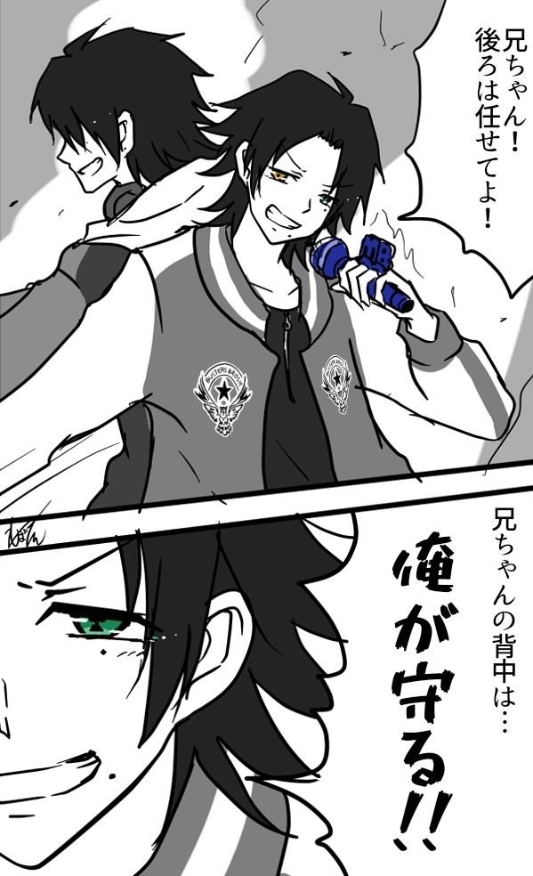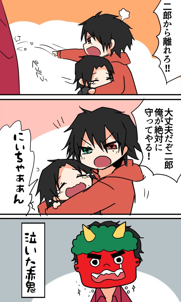 #じろさぶ深夜のお絵かき文字書き一本勝負 お題「兄ちゃん」 いち兄はじろーとさぶろーの兄だけど、じろーはさぶろーだけの兄ちゃん💙💛