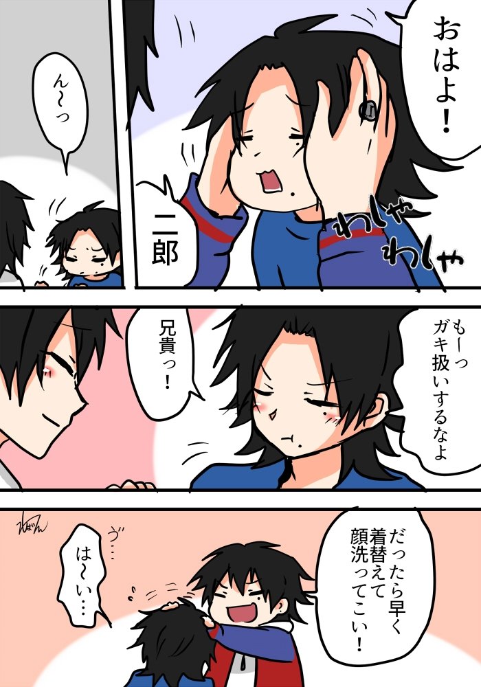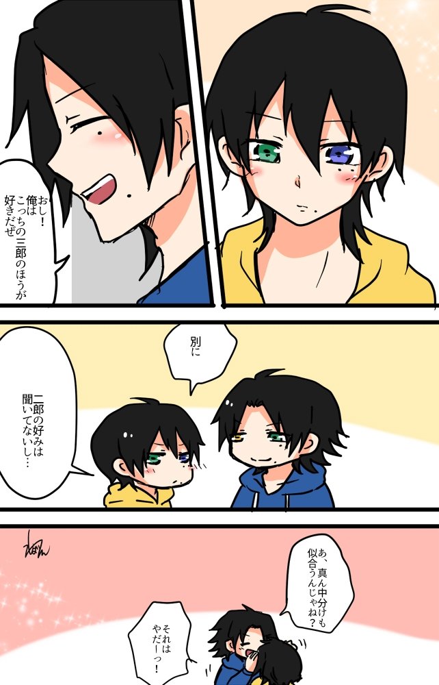 22 164 #じろさぶ深夜のお絵かき文字書き一本勝負 お題「兄ちゃん」 いち兄はじろーとさぶろーの兄だけど、じろーはさぶろーだけの兄ちゃん💙💛 21/02/07 21:22