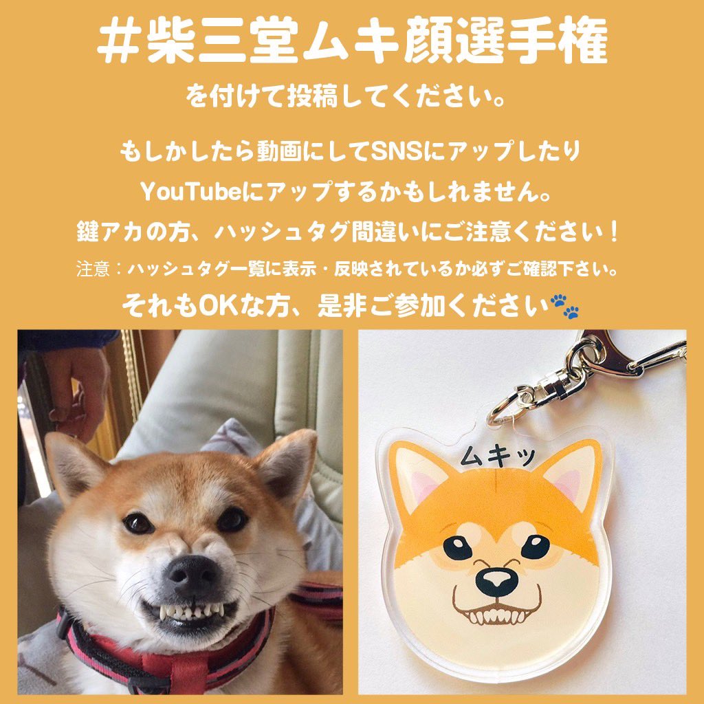 愛犬のムキ顔が好きでムキ顔グッズを作ってしまった柴三堂😬 #柴三堂ムキ顔選手権 を開催します! 参加者にはオリジナルムキッグッズを贈呈いたします😬❤️うちの子のムキ顔で、是非ご参加下さい🐾 〆切2月19日12時まで
