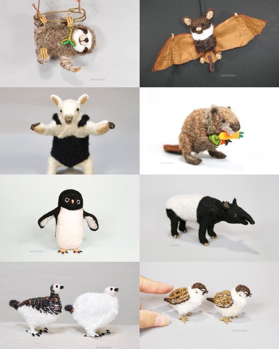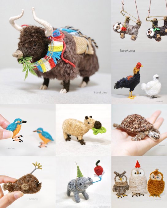 #色んな世界観を覗いて見ませんか 毛糸とワイヤーでできた動物たち クチバシを開け閉めできる鳥のブローチや、手足を曲げ伸ばししてポーズを変えられるクマのオブジェなど、ちょっとしたユーモアを大事にしています。