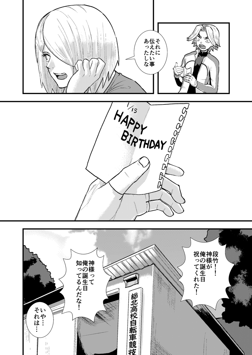 6 16 一月くらい遅れたけれど妻の誕生日祝いに総北高校スプリンターの二人で「誕生日」というお題で描いてみました マンガ久しぶりすぎデスワ… 22/10/18 00:44