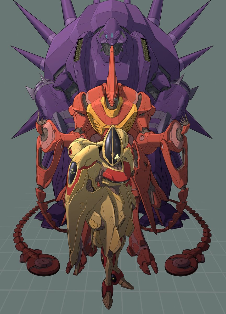ザンスカール系の新型を作るにあたり ・ザンスカ系MSは曲面が多いから、カエル風の丸っこい体型に ・エンジェルハイロゥのイメージで全身に輪っかを付ける といったプランで作業しましたが、さすがに ・「ドゥカー・イクが着けてた謎のヅラ」を意識したバルカンポッド は自分でNGにしました(2枚目 twitter.com/shibuya_rain14…