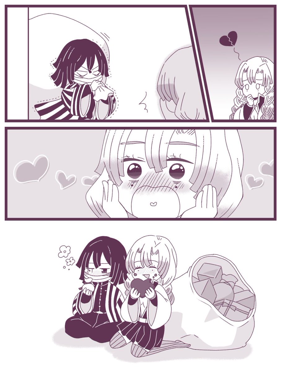 #おばみつ版深夜の真剣60分一本勝負 1日遅れだけどハッピーバレンタイン🍫💓 蜜璃ちゃんのあげたチョコが小さいのは、あまり大きいのあげると迷惑かしらと気にした結果であって義理チョコではないんです!!と補足しておく…( ◠‿◠ )
