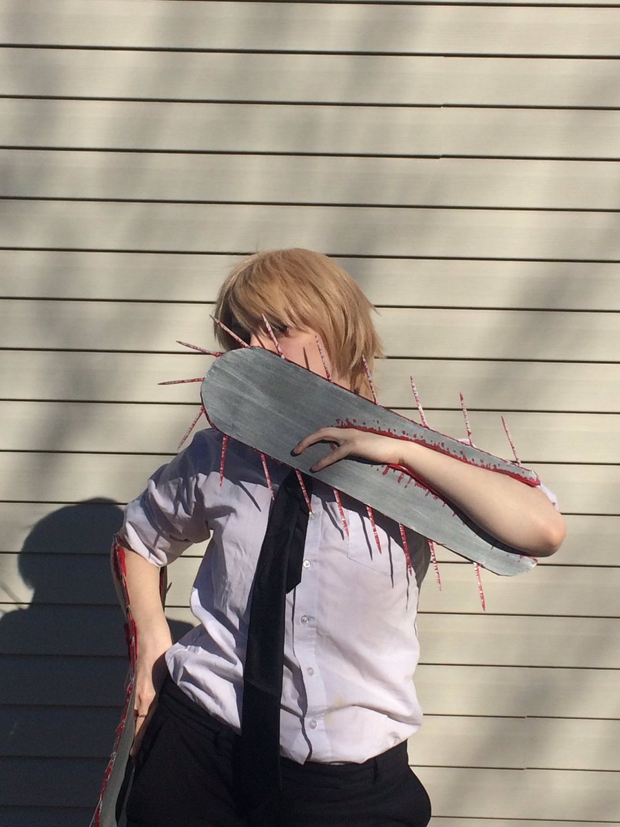 The lighting in my back yard was terrible but my pic setup is broke while I fix my room. Anyway Denji Time. #chainsawman #shonenjump #cosplay #chainsawmancosplay #cosplayprop