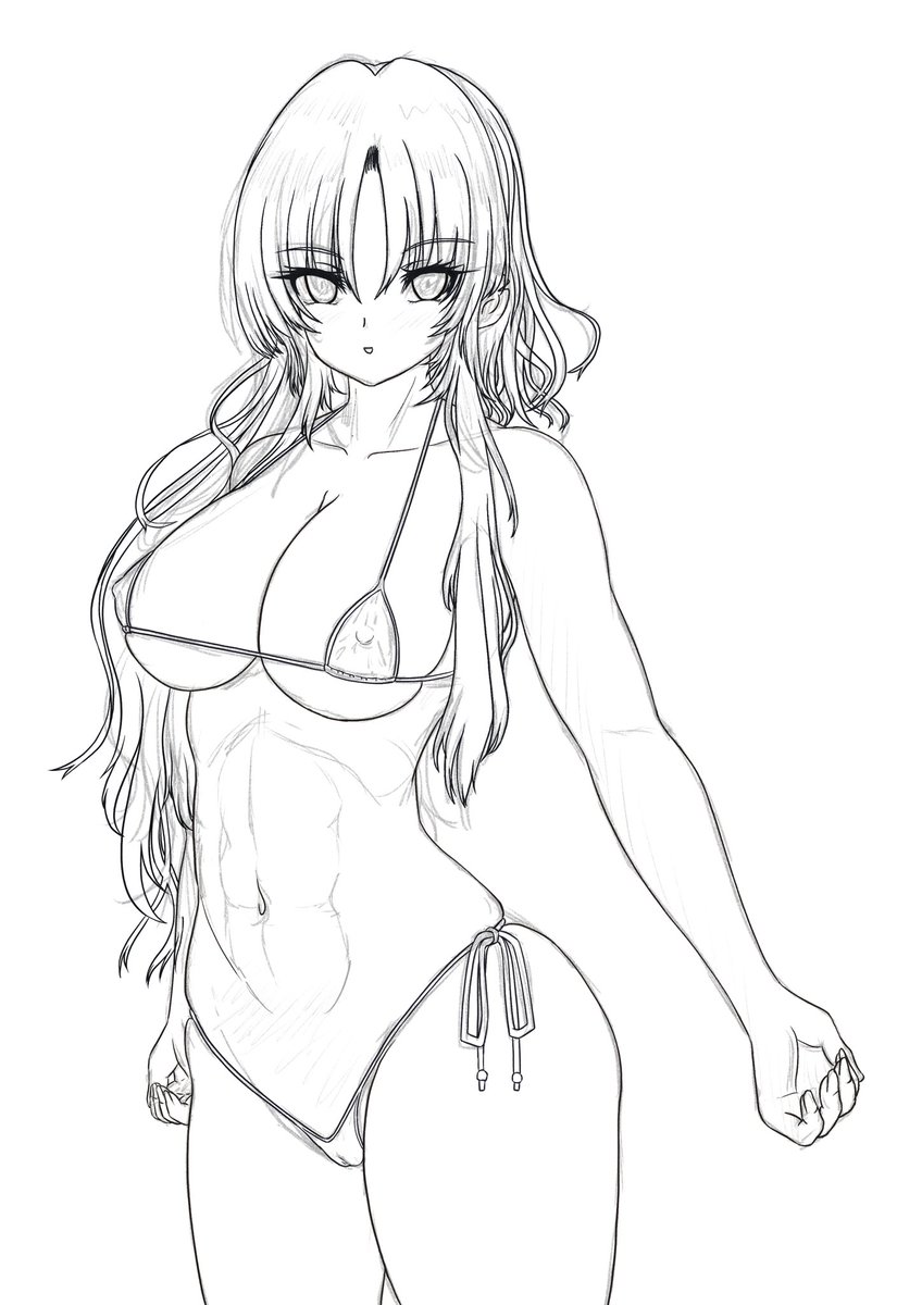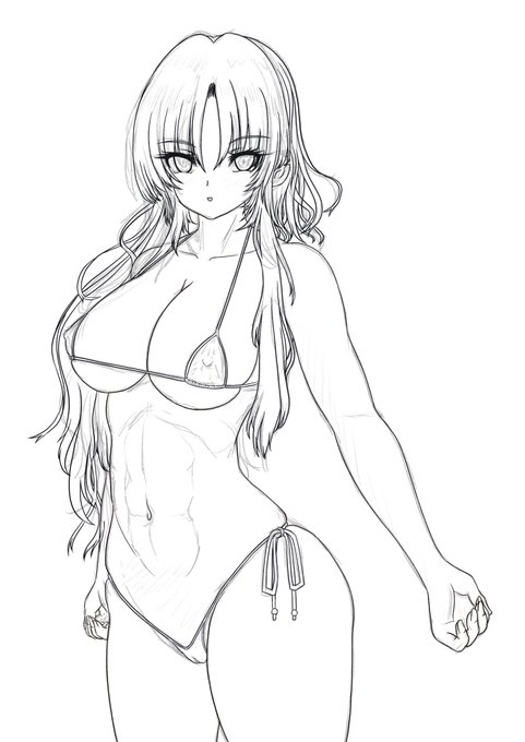 #絵描きさんと繋がりたい #春の創作クラスタフォロー祭り #うちの子 WIP うちのオリジナル漫画の雪奈さんです。 極小の布の面積のビキニ仕様です。 やはり、雪奈さんはクールです(*´꒳`*) ペン入れしました。(ラインは若干修正しました)